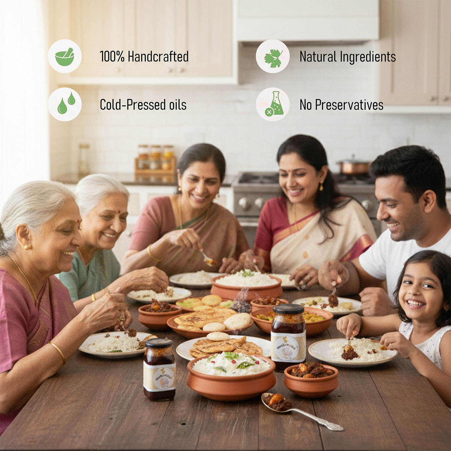 cold-pressed gingelly oil, and blended with authentic spices to give you a rich, aromatic and delicious pickle.