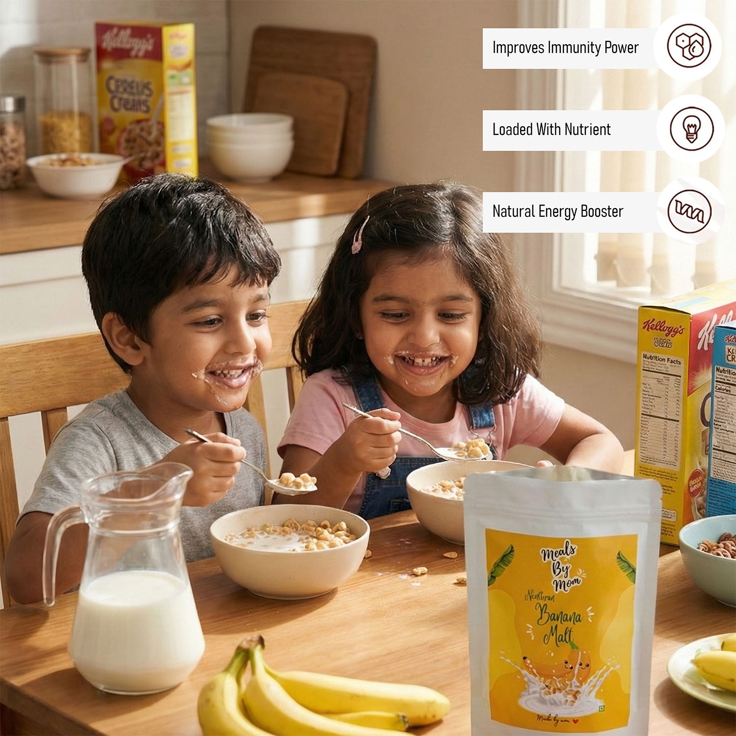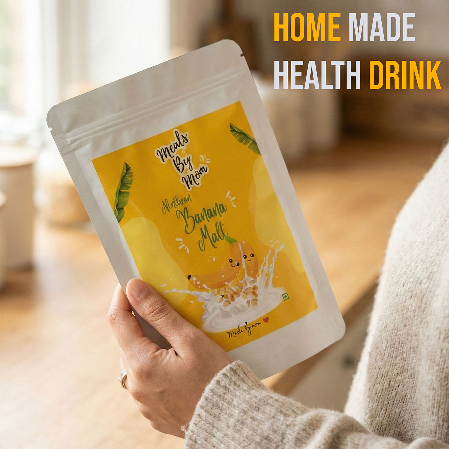 Meals by Mom’s Nenthran Banana Malt is a wholesome, homemade malt powder crafted from ripe nenthran bananas, roasted grains, and natural ingredients.
